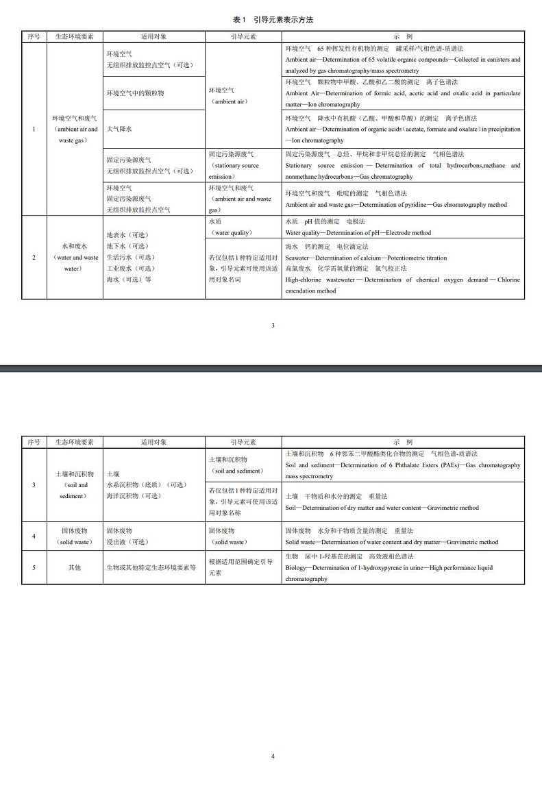 其中,主體元素由監(jiān)測(cè)項(xiàng)目和監(jiān)測(cè)目的構(gòu)成,引導(dǎo)元素未充分體現(xiàn)生態(tài)環(huán)境要素特點(diǎn)時(shí),可在主體元素中補(bǔ)充說明。主體元素中監(jiān)測(cè)項(xiàng)目包括化學(xué)元素、化合物、混合物、生物體或特性等,應(yīng)優(yōu)先選擇通用的規(guī)范名詞。