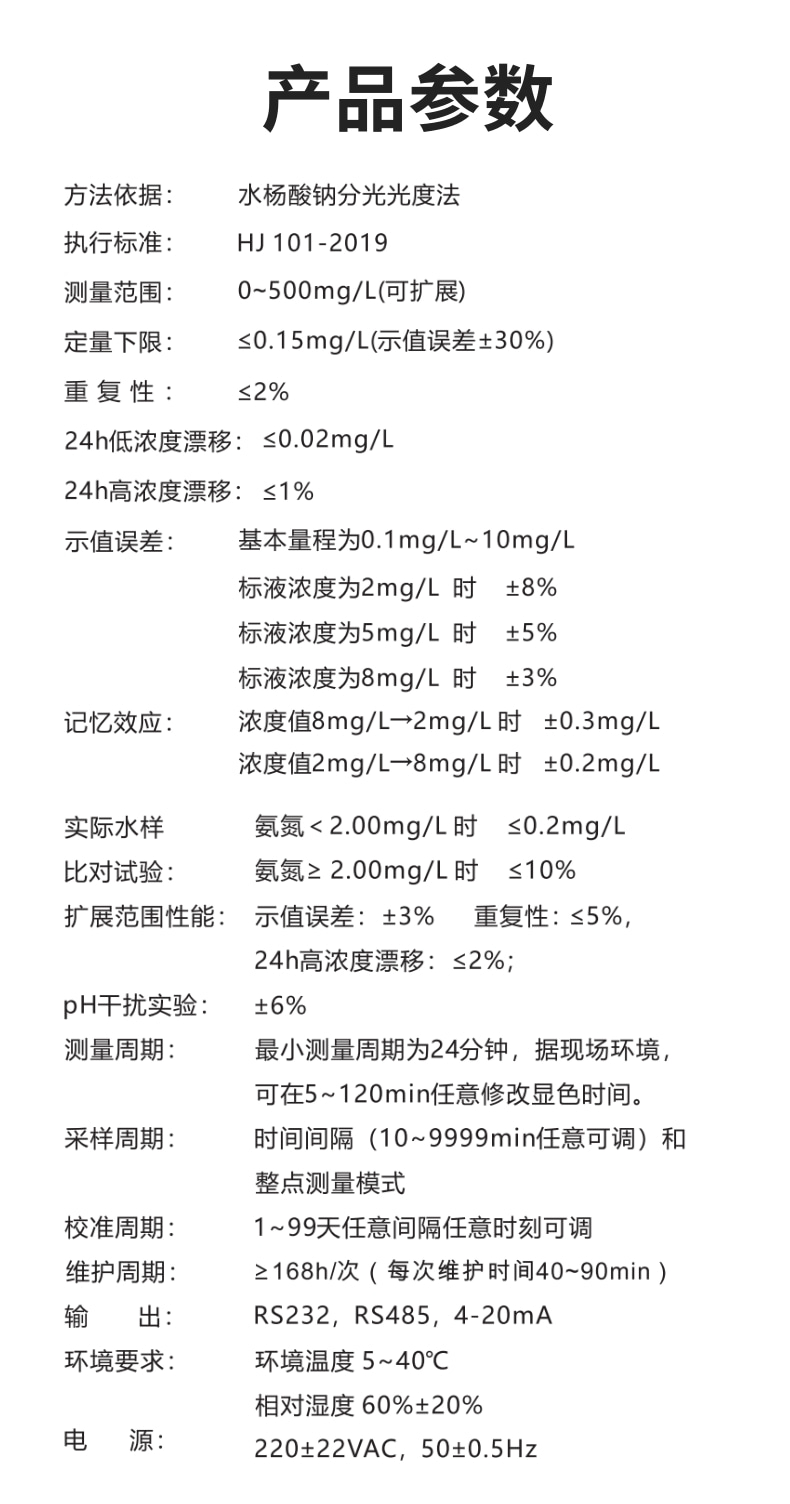 產(chǎn)品簡介: ·型號:CN1002A(柜式)、CN1002B (精巧型) √ 采用分光光度法,測量更精準(zhǔn); √ 10寸智能觸控大屏,人機(jī)界面友好; √ 自動標(biāo)準(zhǔn)樣品核查,減免人工作業(yè); √ 自動連續(xù)監(jiān)測,實時數(shù)據(jù)遠(yuǎn)傳; √ 異常報警和斷電不會丟失數(shù)據(jù); √ 超大數(shù)據(jù)存儲,保存歷史5年以上。