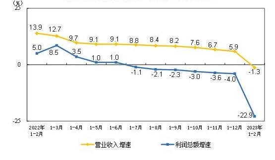 各月累計(jì)營(yíng)業(yè)收入與利潤(rùn)總額同比增速